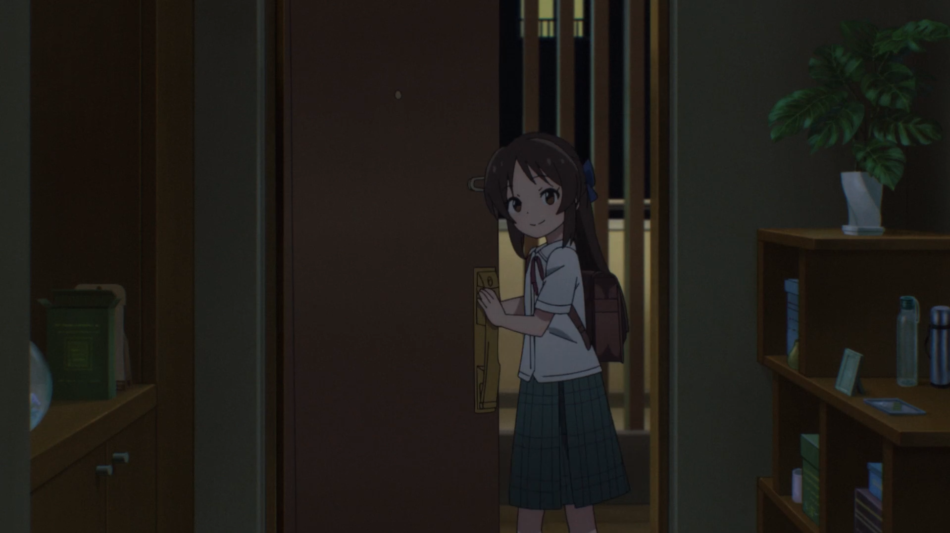 아까전 아침에 금붕어 두마리가 어항에 재대로 있음과 대조적으로 이번 장면에는 어항에서 금붕어가 한마리도 보여지지 않습니다. 아침과 대조적으로 집안에 역시 부모님이 아직 오지 않으셨음과, 아리스의 마음속에서도 부모님에대해 어느정도 실망이 나타났음을 표현합니다.