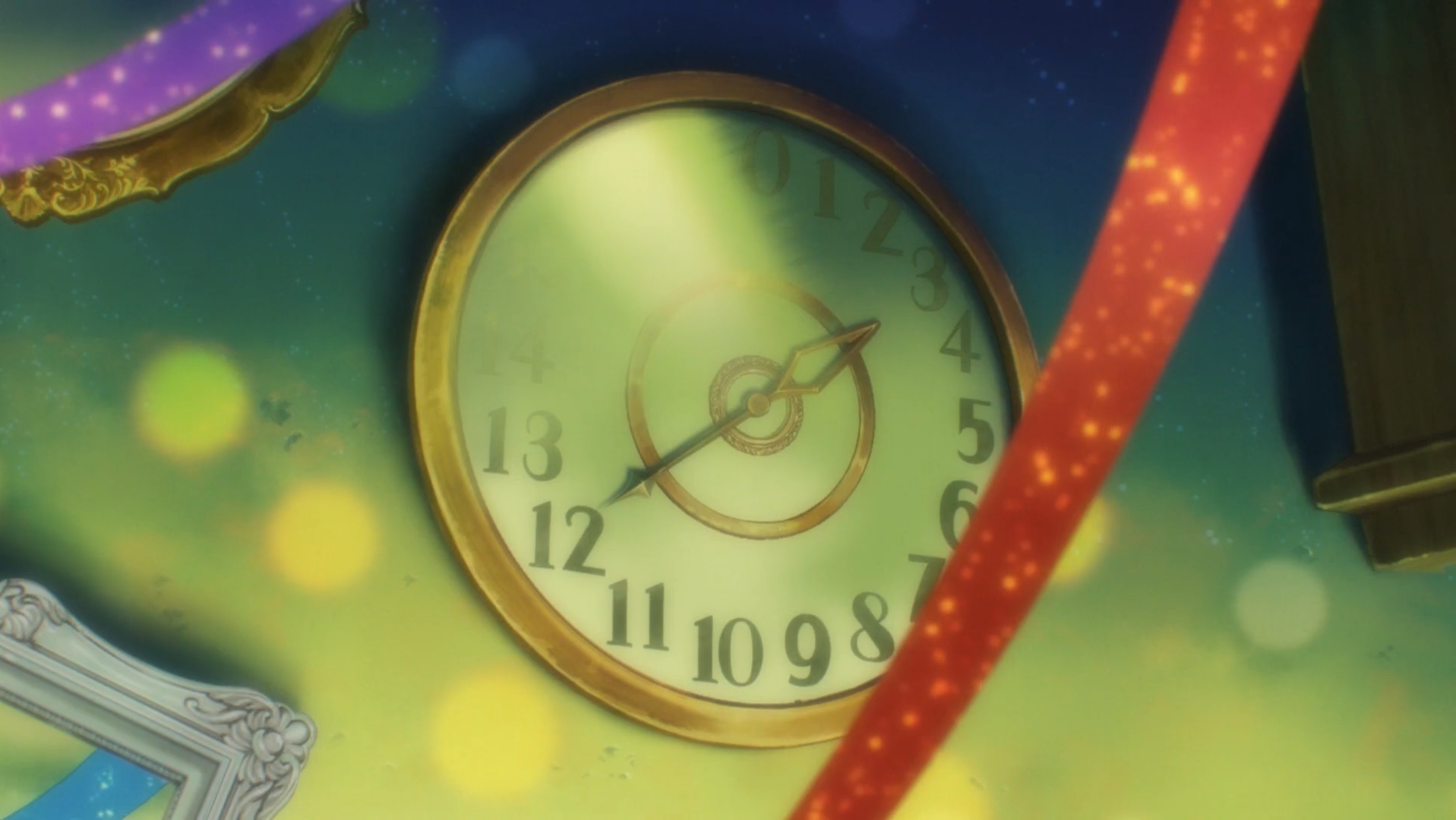 여러개의 시계중 이상한 숫자를 갖는 시계 하나가 클로즈업되며 12시가 되는 순간 아리스는 무언가를 깨달은 표정을 하더니 자명종 소리와 함께 잠에서 깹니다.