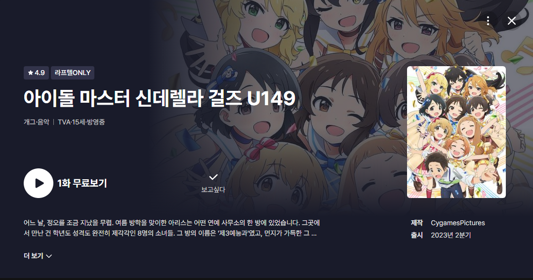 그리고 결국 23년 4월 5일 24시, 테레비도쿄에서 TVA'아이돌 마스터 신델레라걸즈 U149' 제 1화가 방영되었습니다.