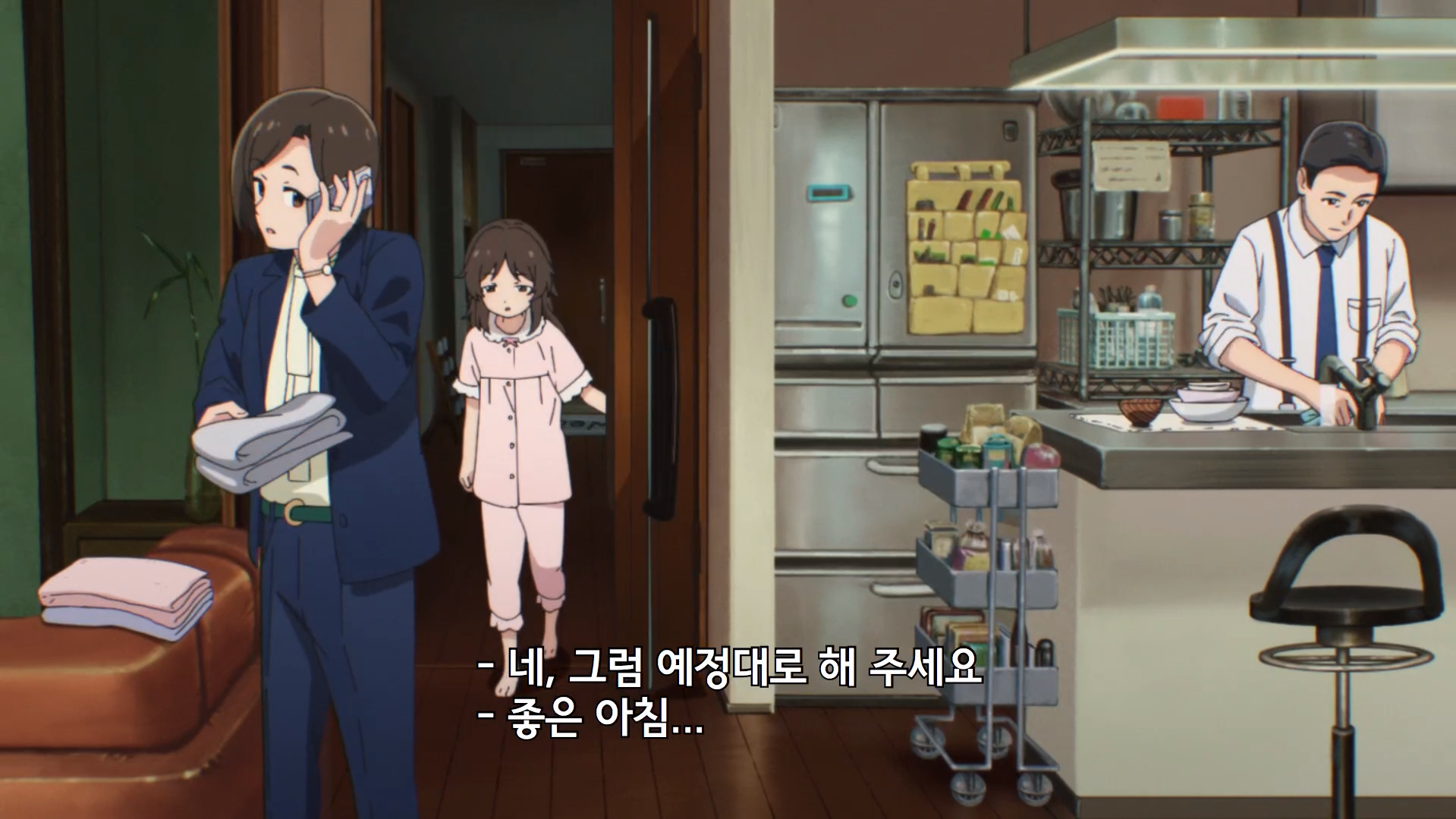 화면에 금붕어 한마리가 나타남과 동시에 어머니께서 집에 도착합니다. 물론 집에 도착하자마자 늦어버렸음과 아침의 약속을 지키지 못했음을 사과했지만, 아리스는 겉으로는 드러내지 않더라도 기분이 썩 좋지만은 않을것 입니다.