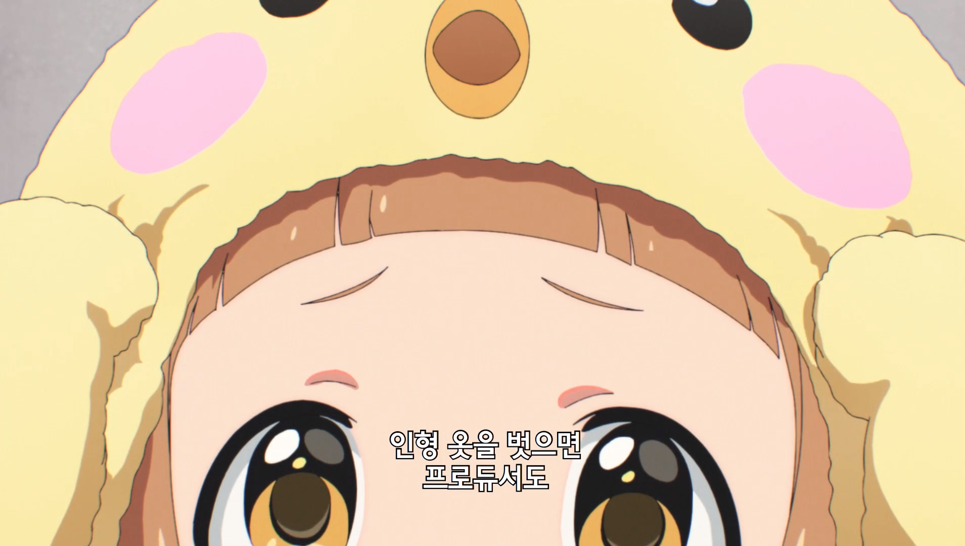 애니에서 프로듀서와 만나, 마법이 풀려도 성장을 이뤄낸 니나는 더이상 인형옷이라는 껍데기를 뒤집어 쓰고 있지 않습니다. 어엿한 한마리의 병아리가 되었죠.