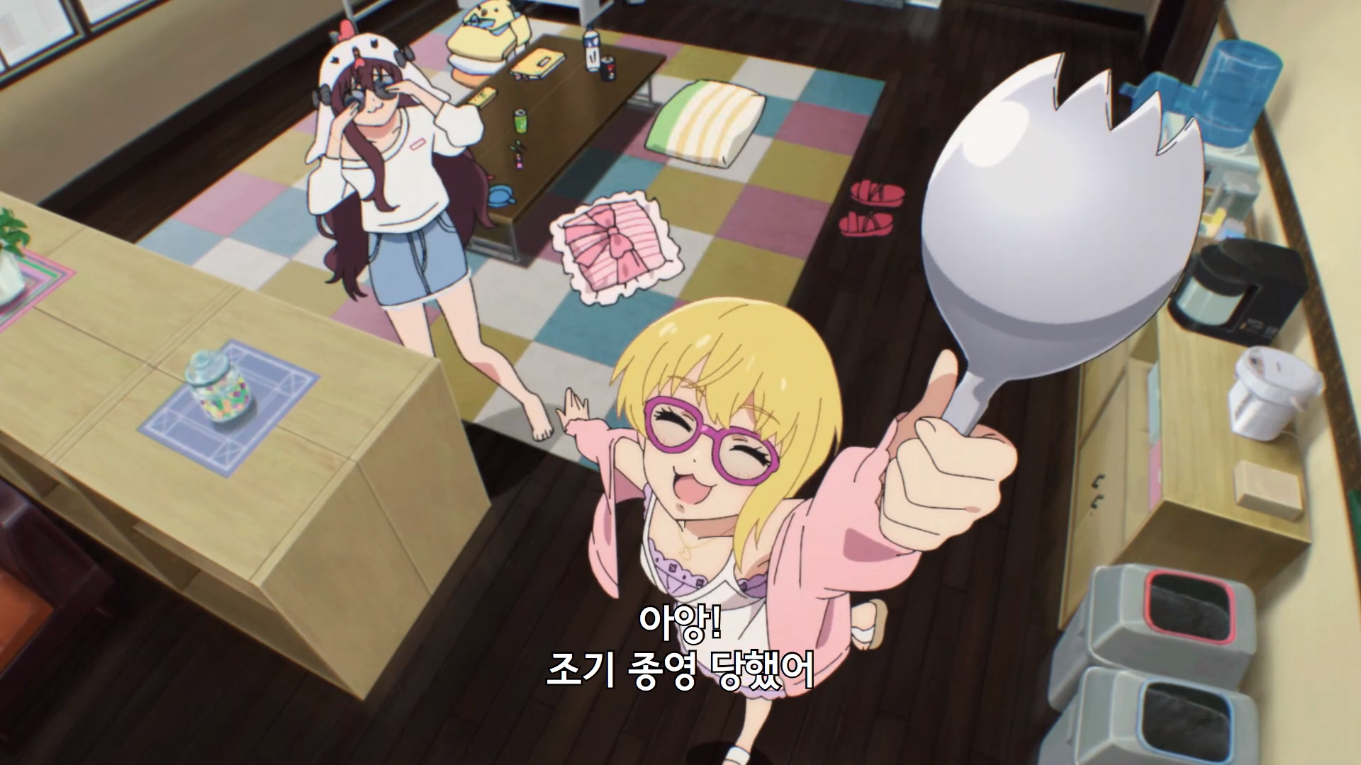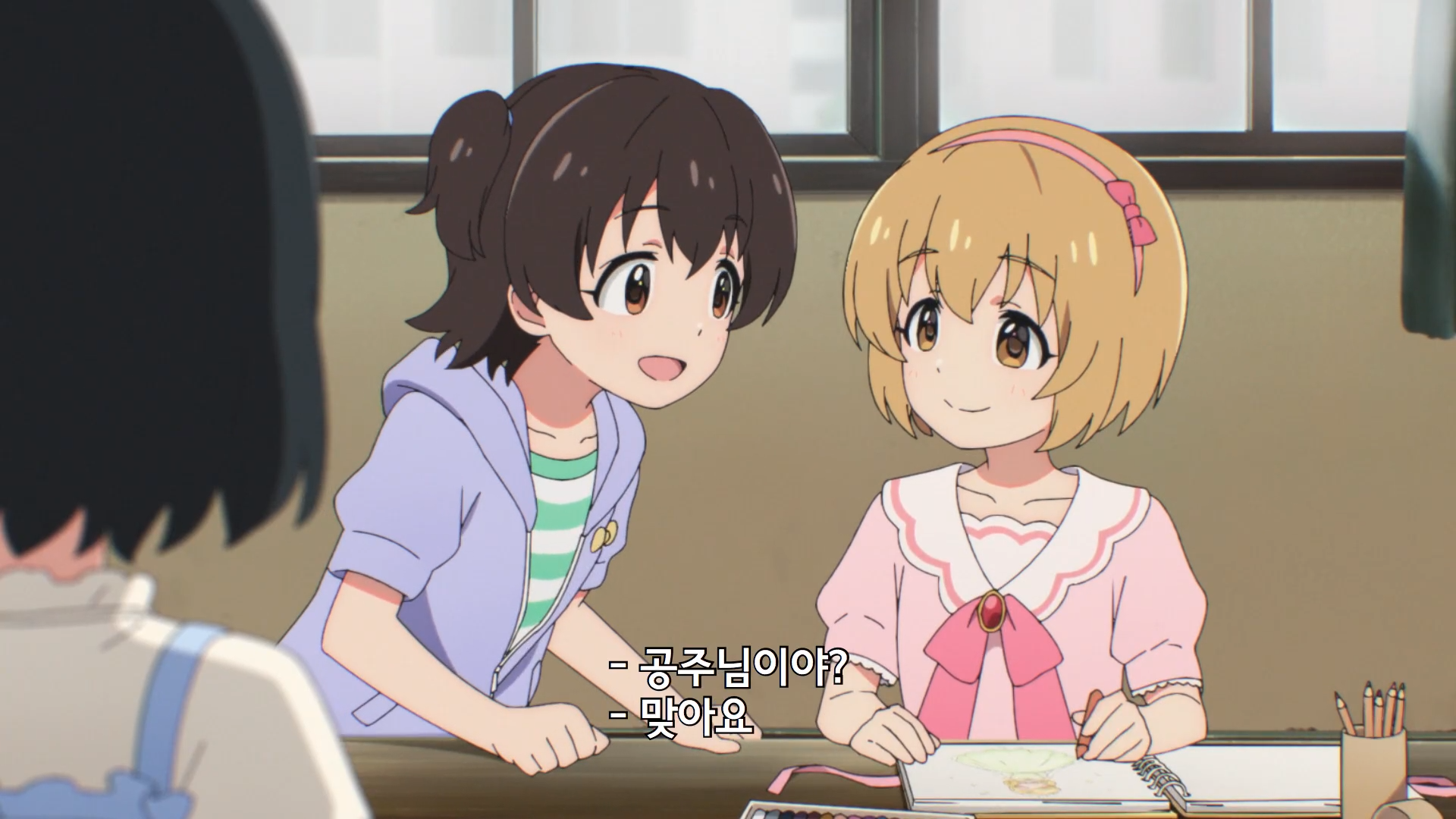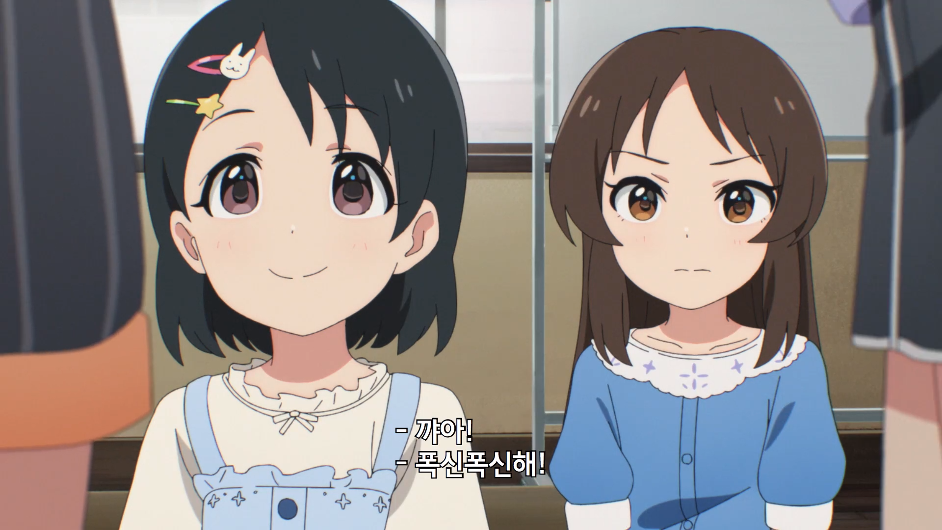 모두 1화와는 또 다른 의상을 입고있는 것이 작화에 신경쓰고 있는것을 보여줍니다. 또한 각자 앉아있는 모습또한 개성이 드러나고 귀엽습니다.