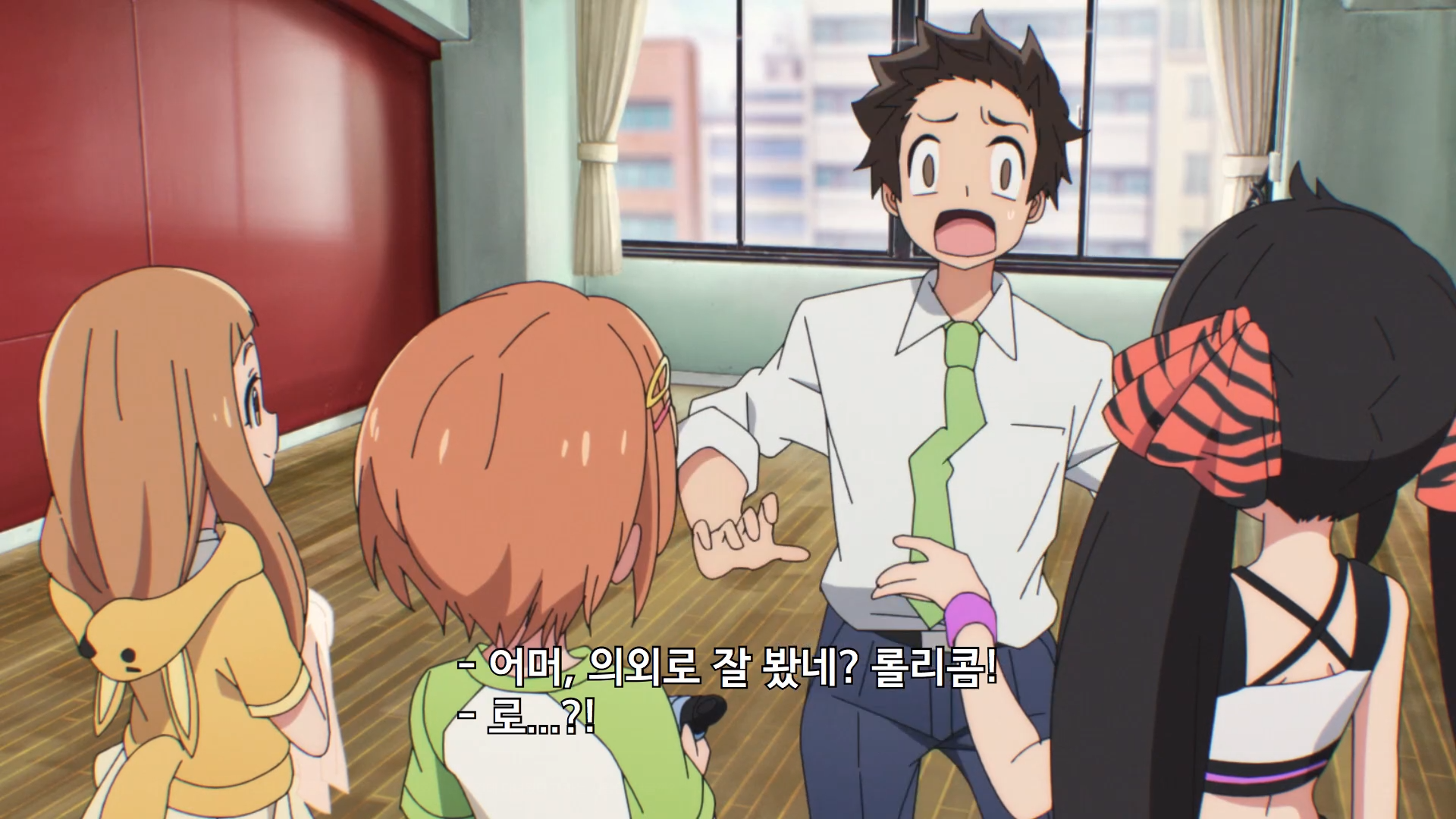 프로듀서가 모두를 칭찬하자 로리콘이라고 부르는 리사. 리사는 모든 화에 한번씩 로리콘 발언을 할 셈인걸까요.