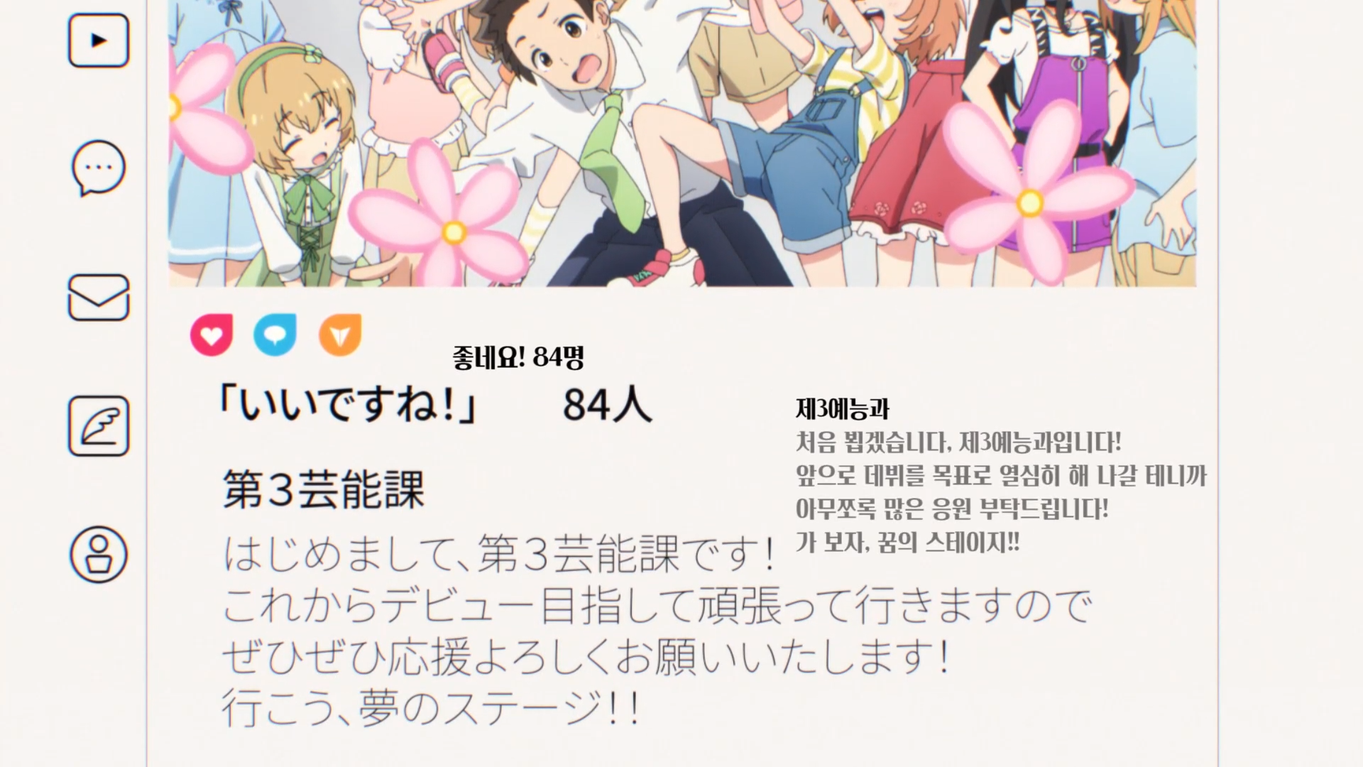 U149는 확실히 아이돌과 프로듀서의 커뮤니케이션이 메인이 되는 이야기입니다만, 원작인 코믹스에서도 강조하다 싶이, 프로듀서의 역할 몫지 않게 동료아이돌 들의 역할도 매우 큽니다. U149는 아이돌이 프로듀서에 의해 성장하는 것이 아닌, 동료 아이돌 모두를 포함한 '제 3예능과'의 성장이야기이기 때문입니다.