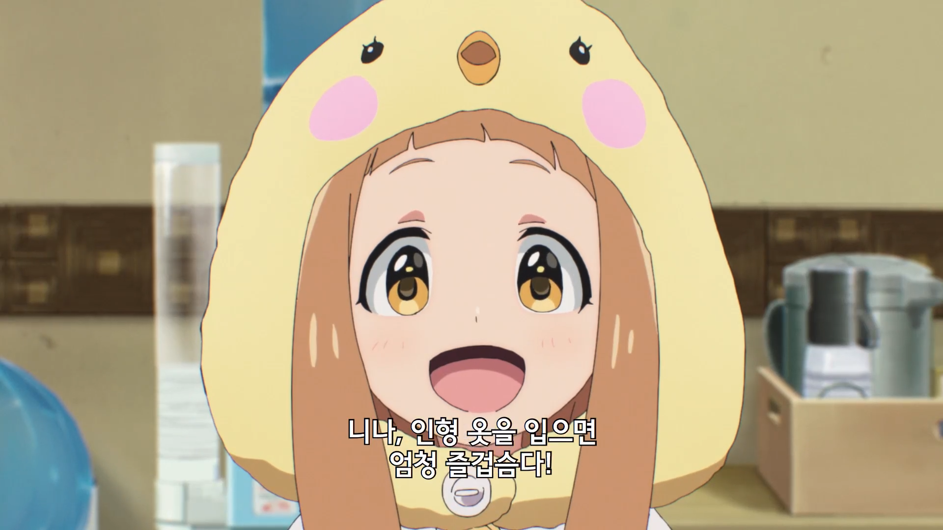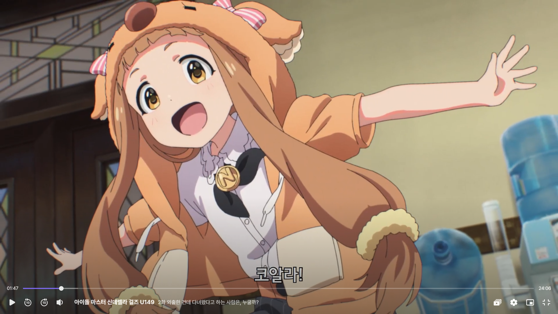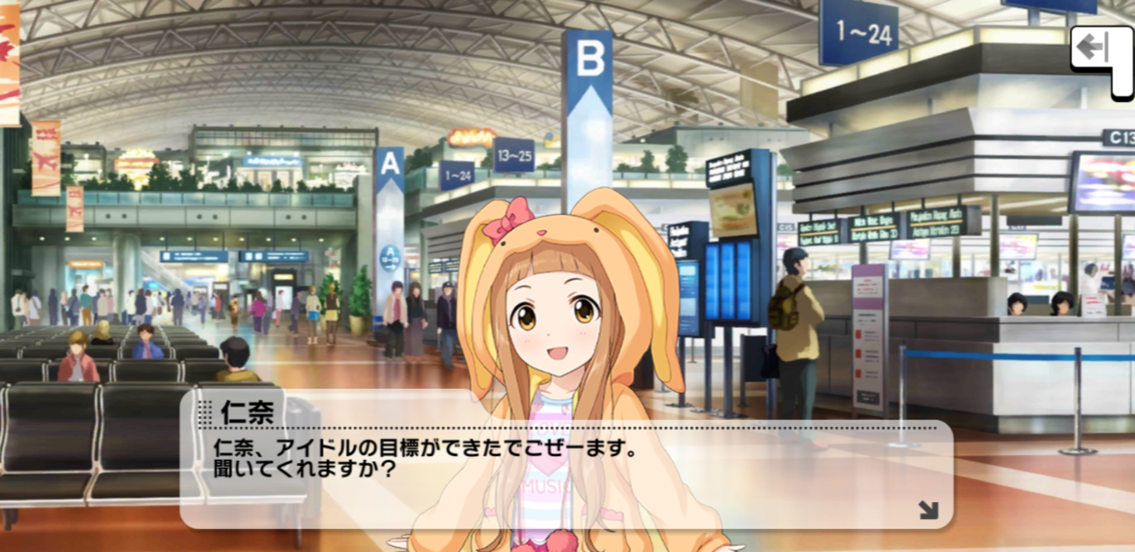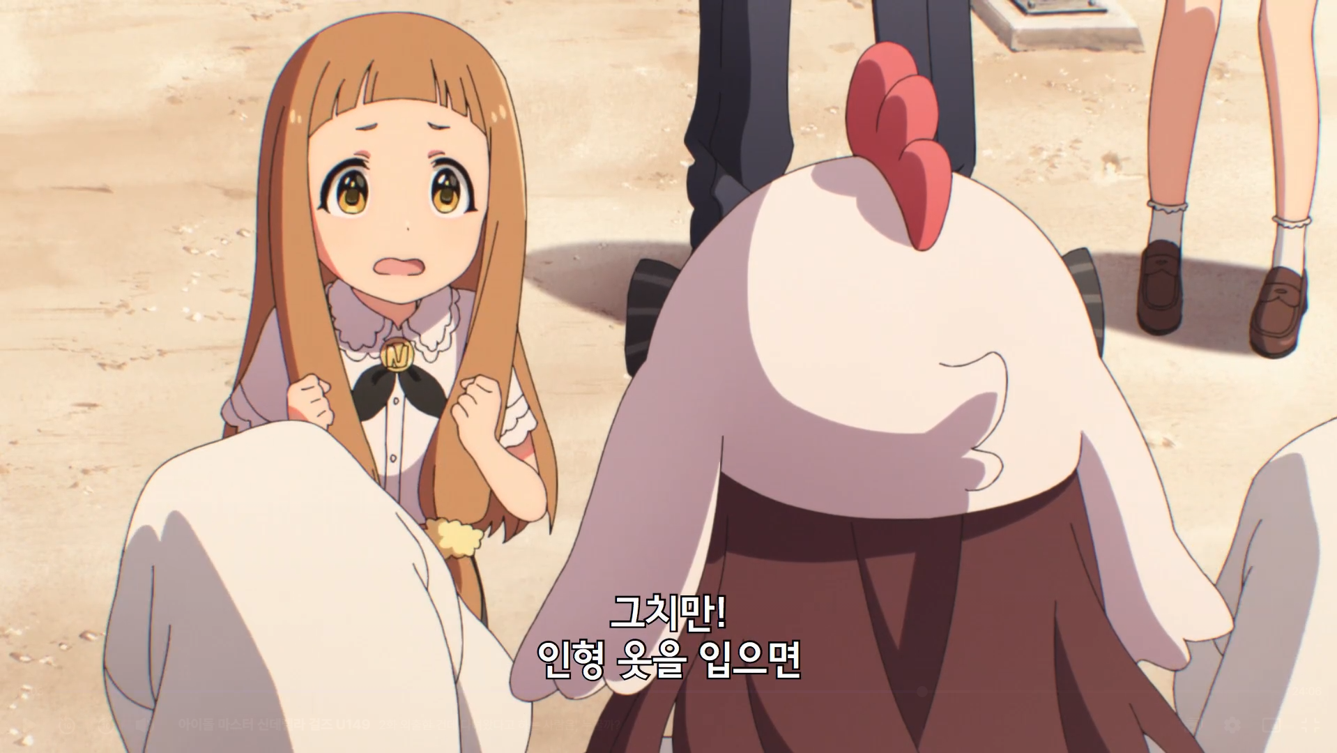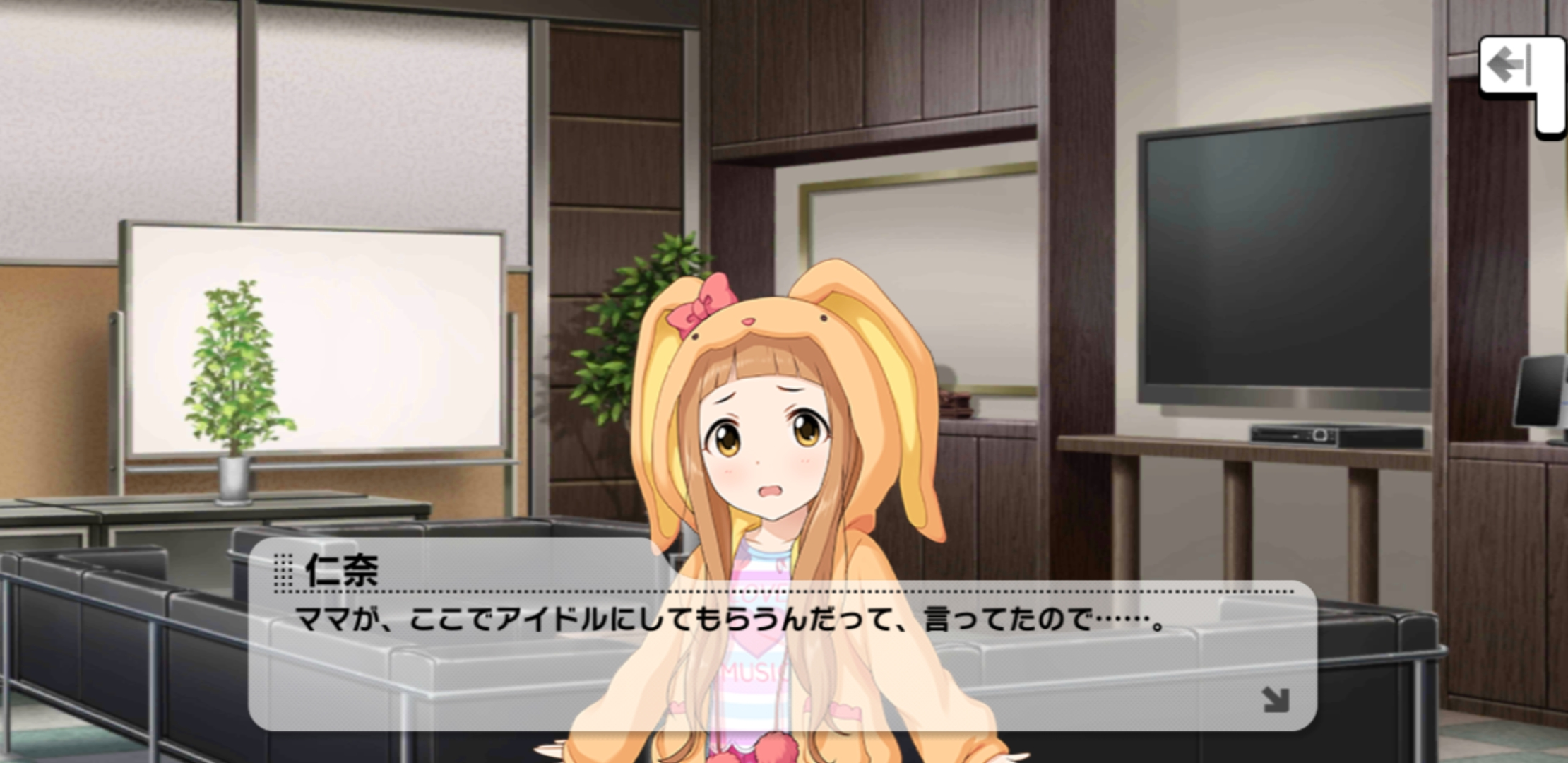 仁奈はまだ着ぐるみがなくてもみんなを笑顔にさせることができるというプロデューサーの話にまだ納得できないようです。