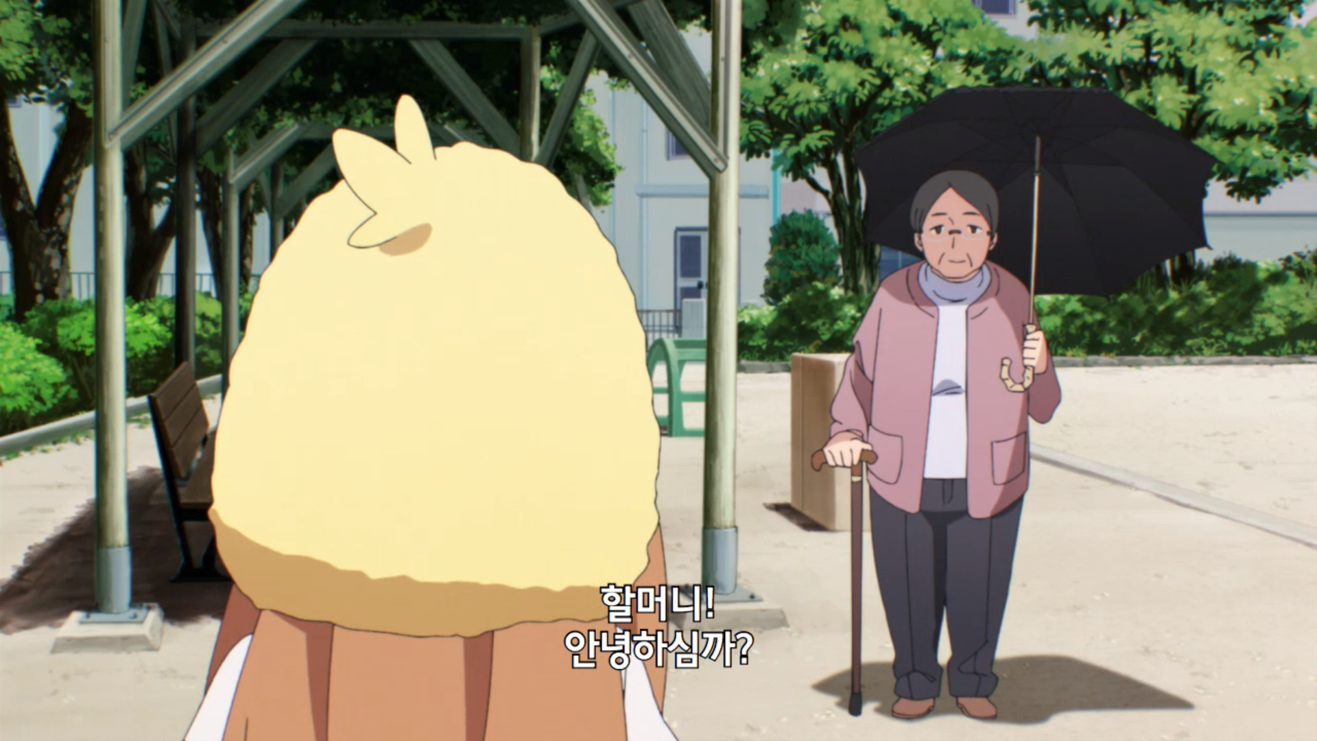 仁奈ちゃんが公園の「カボチャの花」に水をやる場面から始まりす。