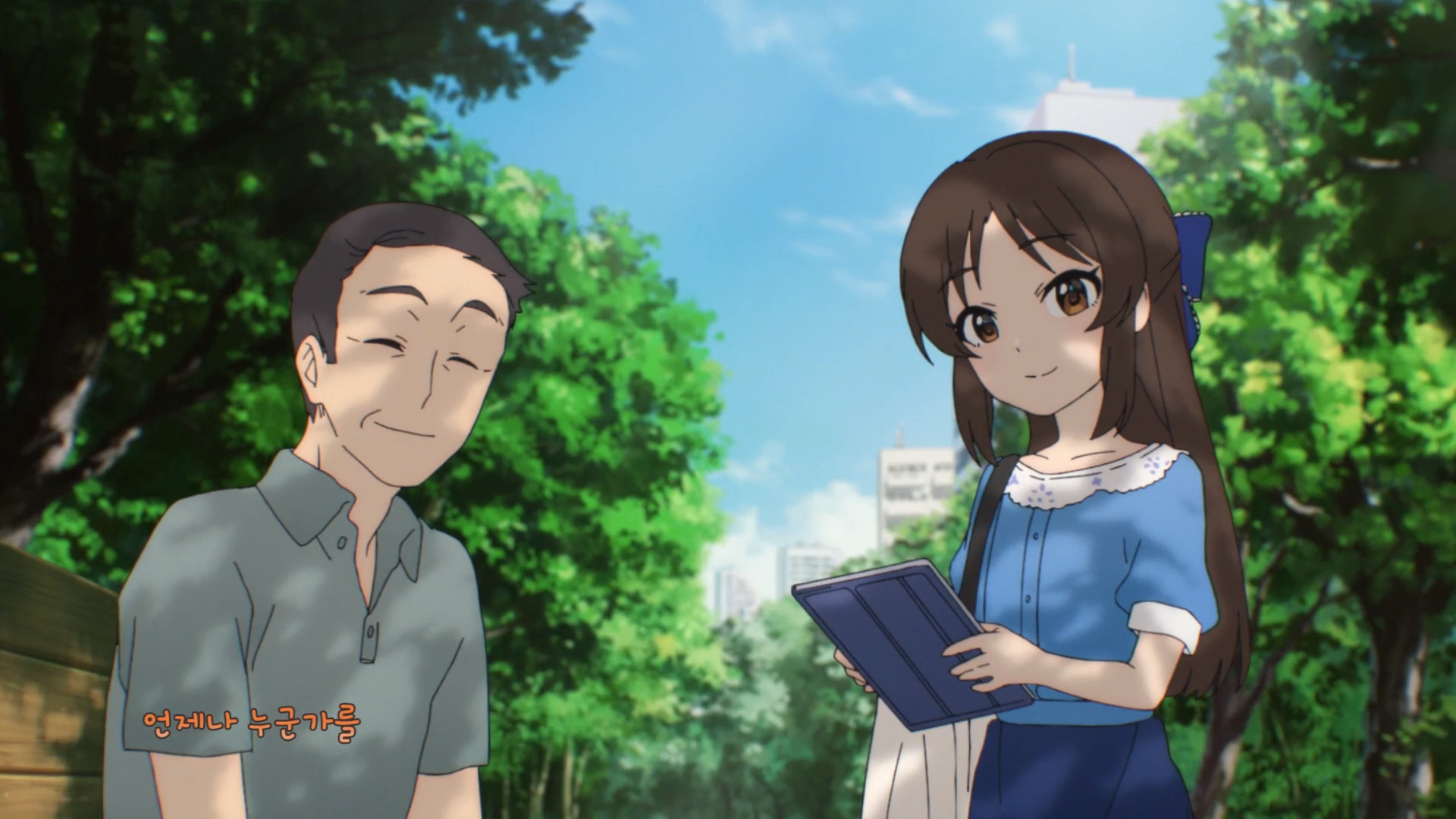 仁奈ちゃんが事務所に行く道中、 近所の人たちが皆仁奈ちゃんに挨拶を交わします。
